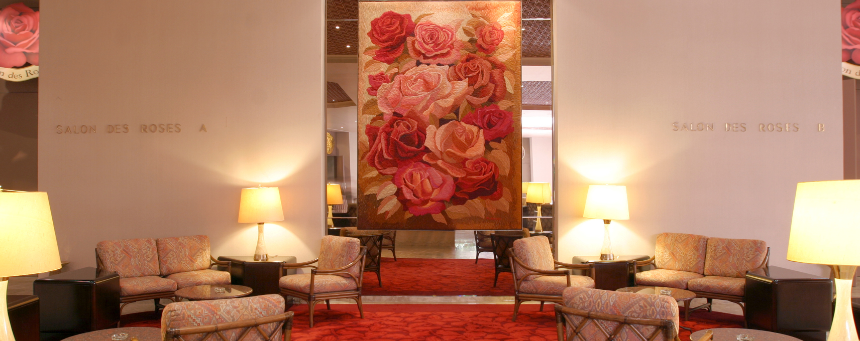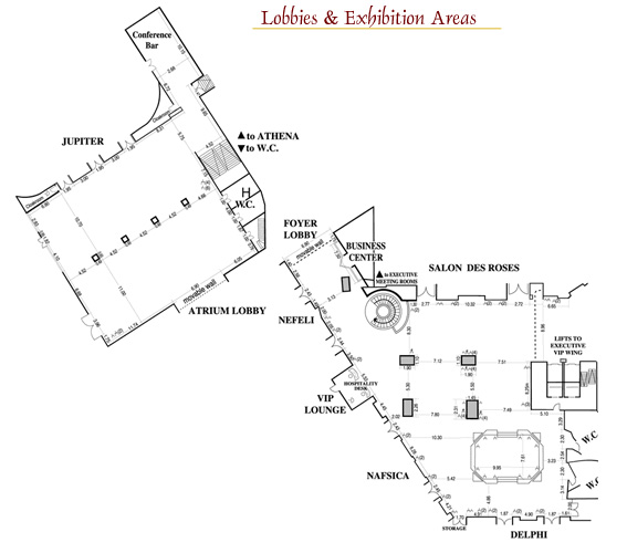 The landmark of the Center is the rose motif, which is the traditional emblem of Rhodes, that perfectly complements the stylish furnishings, refined fabrics, ankle-deep carpets, impressive artworks such as tapestries and mosaics and soft-pink Iranian marble.